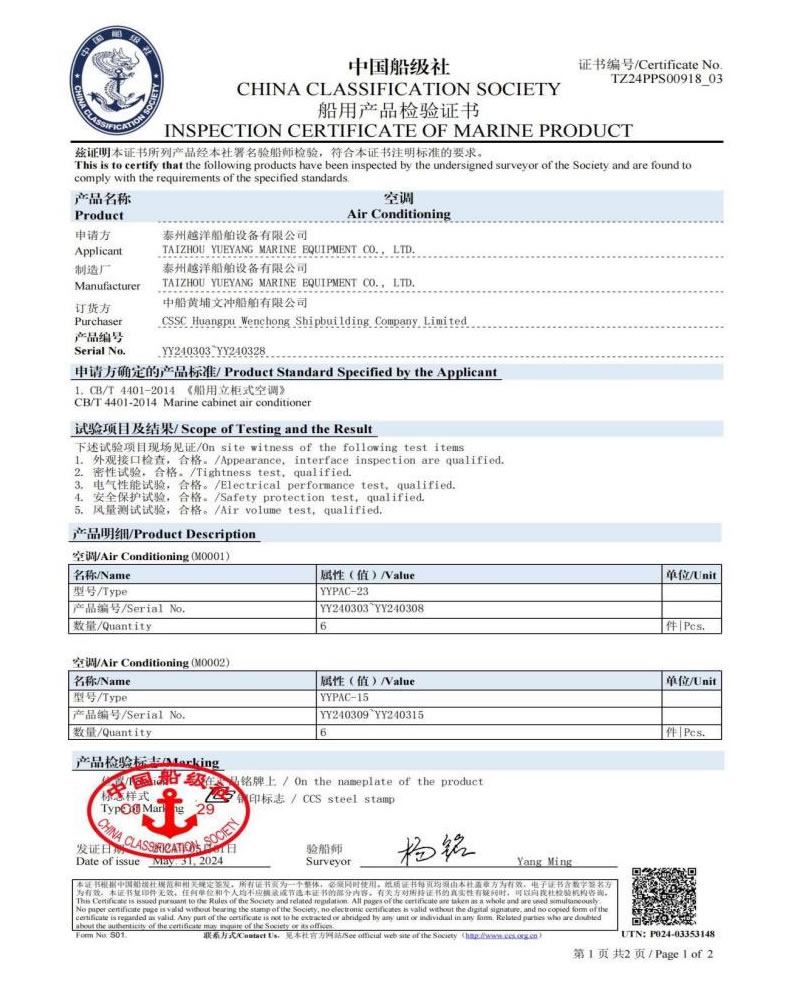 泰州越洋船舶設備有限公司多年專業從事艦船用空調、冷藏、冷凍設備、冷庫系統,通風安裝系統(空調通風,機艙通風,自然通風)等。本公司地處美麗的曲霞鎮工業園區,固定資產1200萬人民幣,占地面積1.5萬平方米左右,公司產品廣泛用于海軍驅逐艦護衛艦,補給艦,海警,醫療船,科考船等,如:“東方紅2“,“海大號”,“向陽紅06”,“向陽紅09”,“向陽紅03”,“大洋1號”,“東方紅3”,“向陽紅18”,“向陽紅52”,地質級科考船“業冶錚”號海洋平臺。